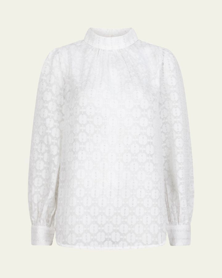 BLOUSE À COL MOMTANT EN PLUMETIS