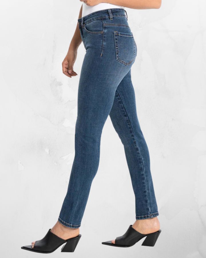 Ce jean GEORGIA SEAMLESS a une taille mi-haute avantageuse et une jambe ajustée que vous adorerez. Ce denim couleur classique offre une extensibilité hors du commun accrue par l'absence de coutures de chaque côté du pantalon. • Denim super-extensible. • Taille mi-haute & jambe ajustée. • Entrejambe 31" • Panneau qui retient le ventre