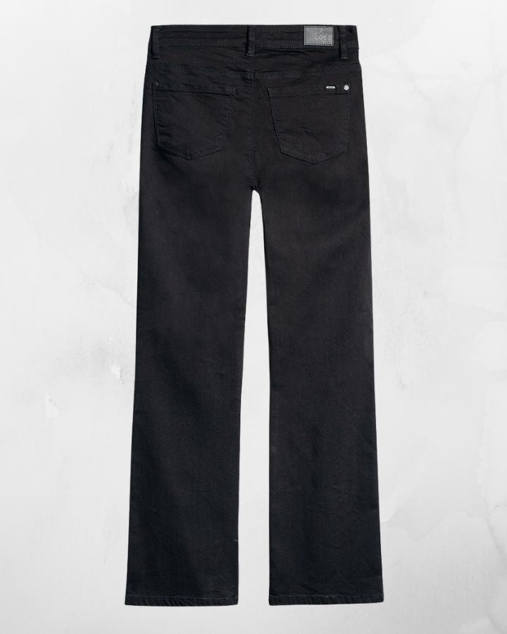 Jeans jambe évasée, taille mi-haute, modèle 5 poches.