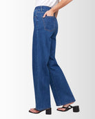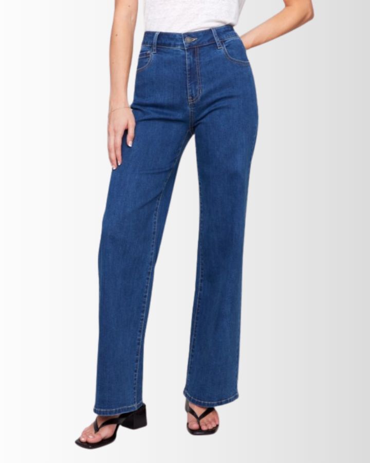 JEANS EN DENIM STRETCH A JAMBE LARGE