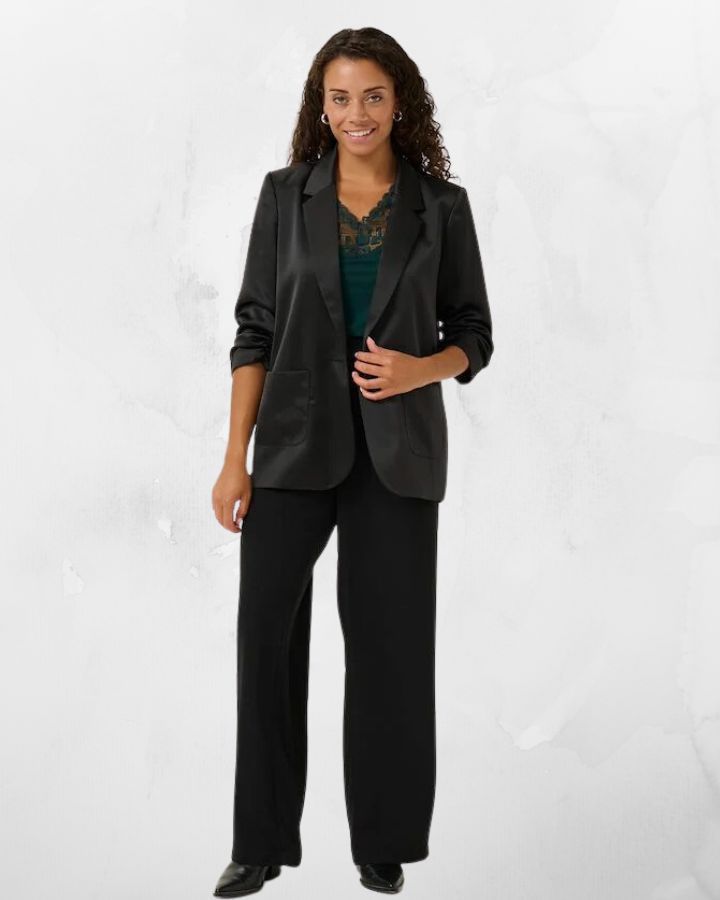 Élevez votre garde-robe avec ce veston satiné à la coupe féminine, conçu pour flatter toutes les silhouettes. Sa longueur aux hanches offre un style moderne et adaptable, parfait pour les occasions formelles comme pour les sorties décontractées. Mesurant 69 cm pour la taille 38, il s’associe aisément à une variété de tenues, apportant une touche de sophistication à votre look. Que vous le portiez avec un pantalon chic ou une robe élégante, ce veston deviendra vite un incontournable de votre collection.