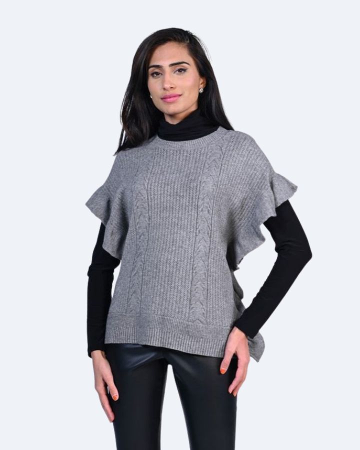 Beau débardeur, manches à volants, encolure ronde, doux tricot ajouré.