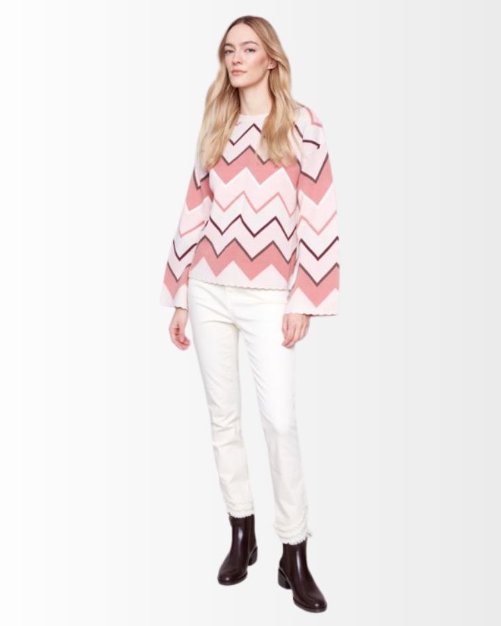 PULL A MOTIF CHEVRON ET MANCHES ÉVASÉES