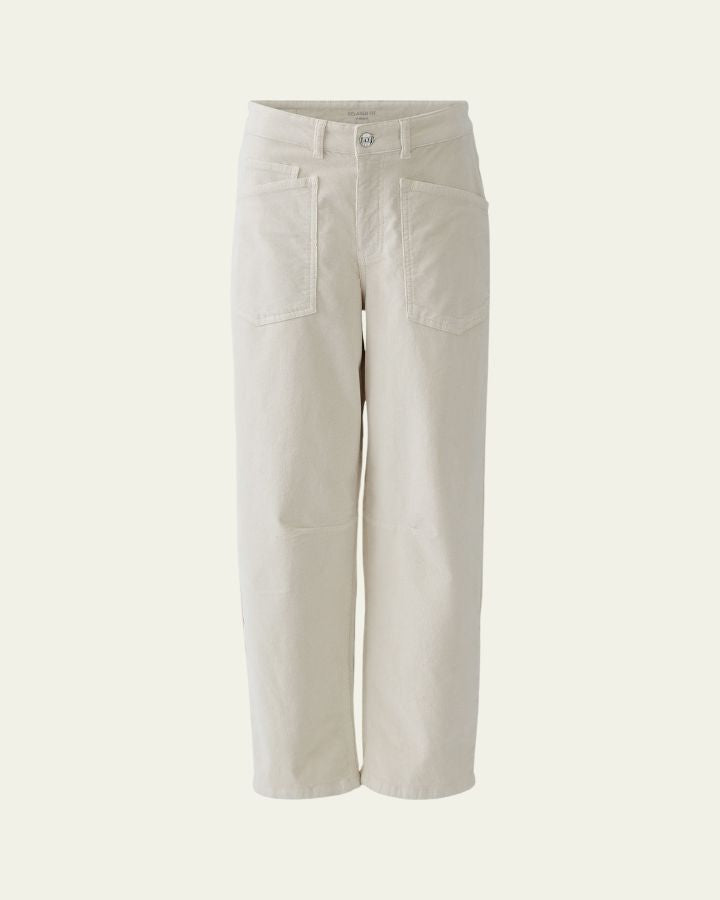 Ce pantalon de couleur ''blanc cassé'' allie style utilitaire et confort. Sa coupe droite et ample offre une belle fluidité, idéale pour un look décontracté mais soigné. Confectionné dans un tissu épais, il est doté de passants, d’une fermeture zippée et de grandes poches plaquées à l’avant pour une touche pratique et tendance. Facile à assortir, il se porte aussi bien avec un pull cosy qu’une blouse légère. Une pièce polyvalente qui mêle sobriété, modernité et caractère.