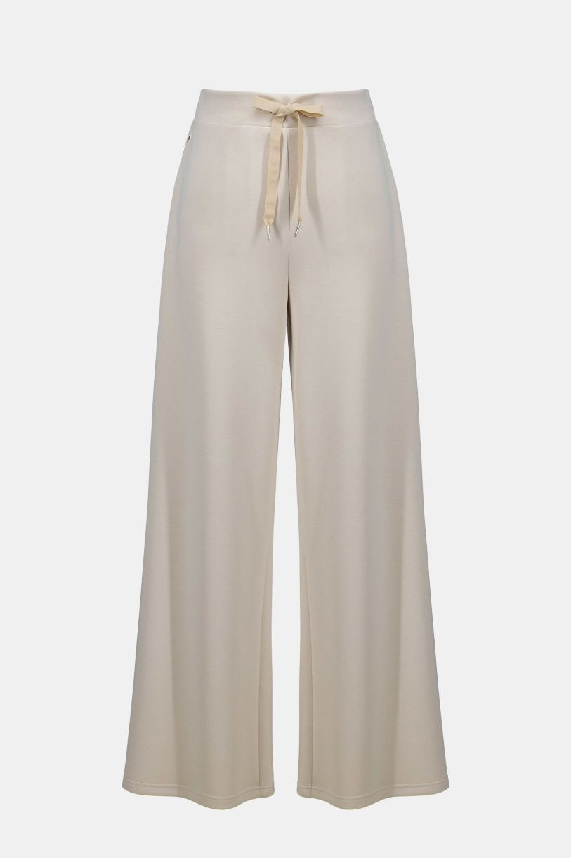 Conçu pour le confort avec une touche d’audace, ce pantalon à enfiler en jersey scuba présente une silhouette à jambe large et une ceinture extensible cintrée avec des cordons coulissant aux embouts métalliques.