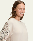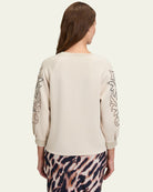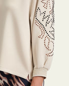Ce sweat-shirt signé Betty Barclay incarne le raffinement à l’état pur. Ses manches trois-quarts sont sublimées par des ornements métalliques colorés noir et doré apportant une touche chic et tendance. Le col rond et les poignets côtelés assurent confort et tenue impeccable. Fabriqué dans une matière douce, il est idéal pour un look casual mais travaillé. À associer avec un pantalon classique ou un jean pour une allure stylée en toutes circonstances.