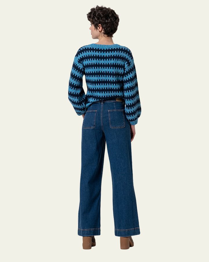Adoptez un look résolument rétro avec ce jean large à l’allure seventies. Confectionné dans un denim souple et structuré, il allonge la silhouette grâce à sa coupe évasée et sa taille haute flatteuse. Les larges poches plaquées à l’avant ajoutent une touche utilitaire et originale, tout en soulignant la taille.