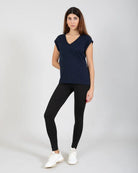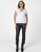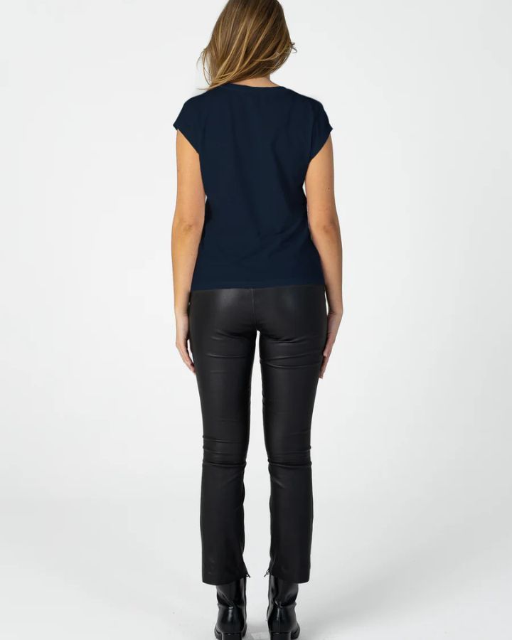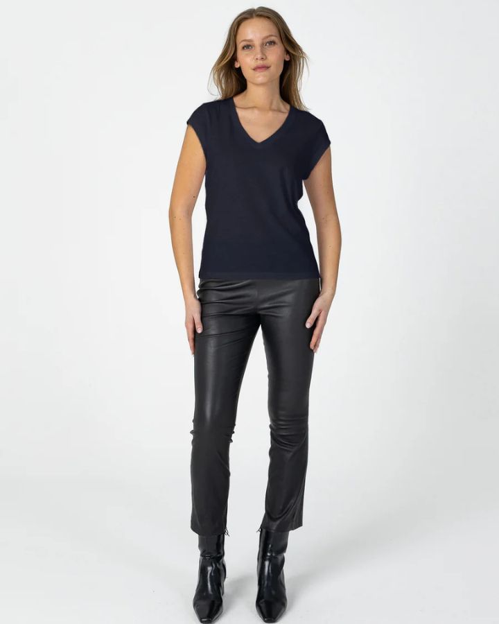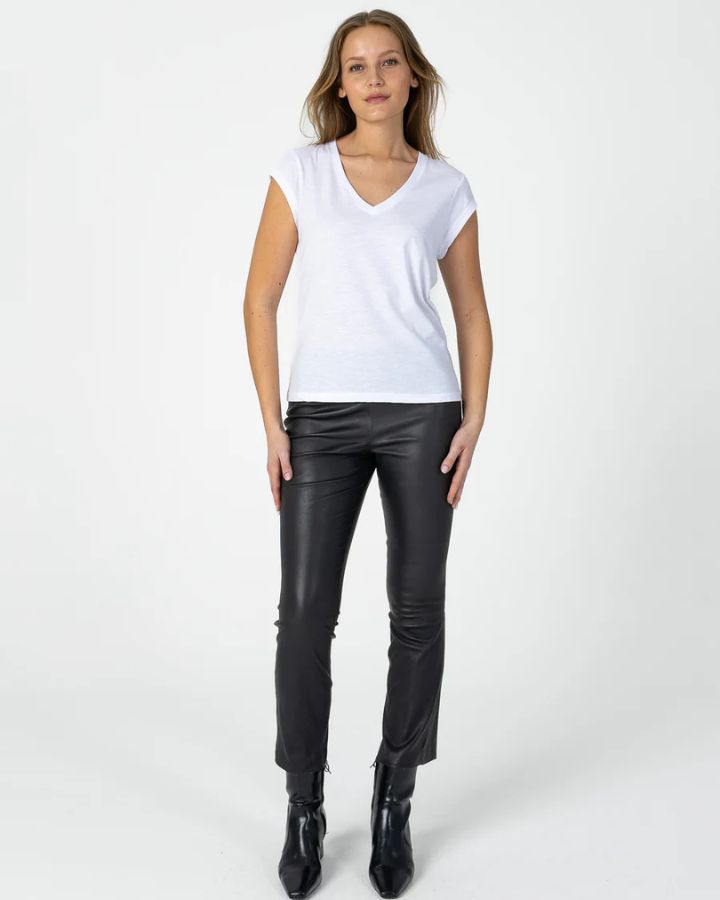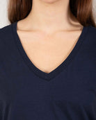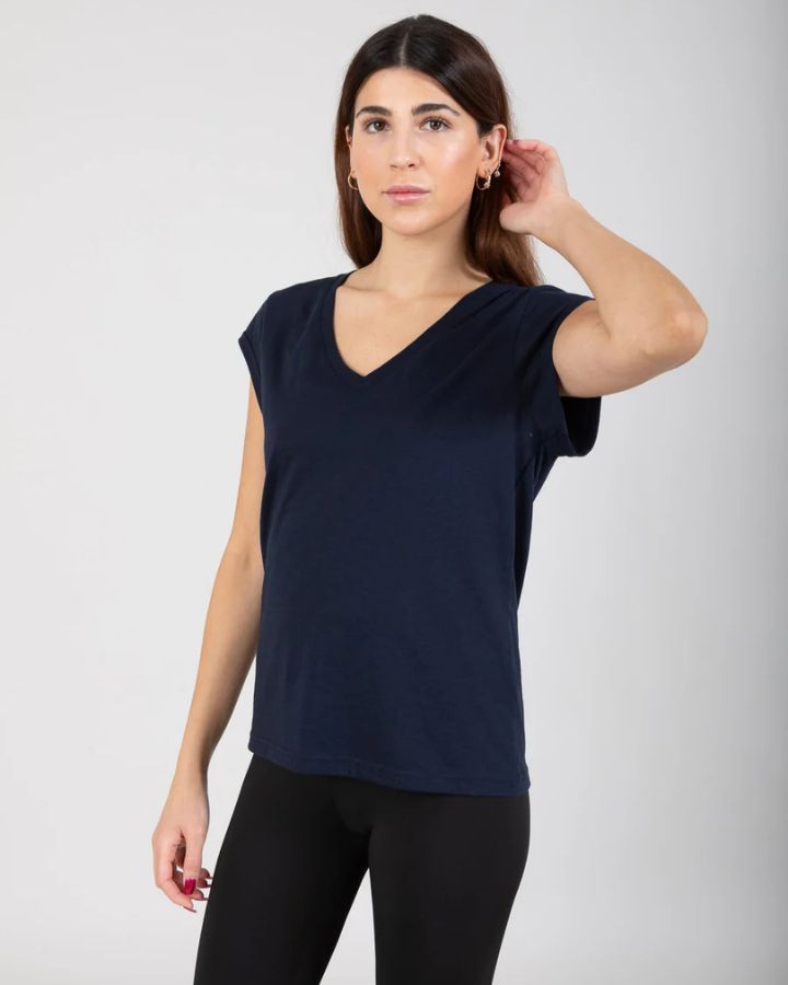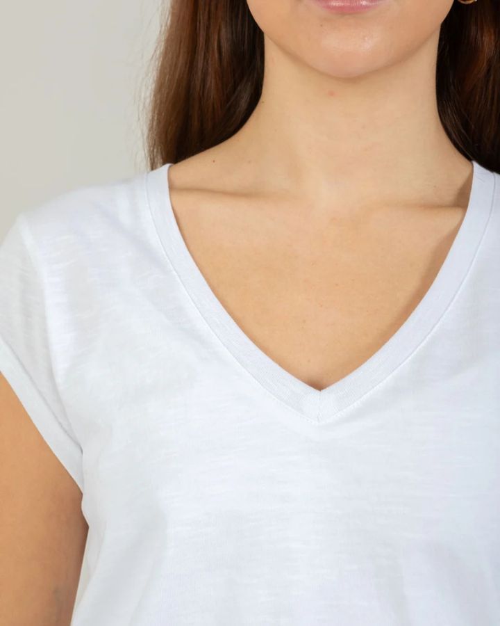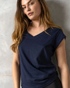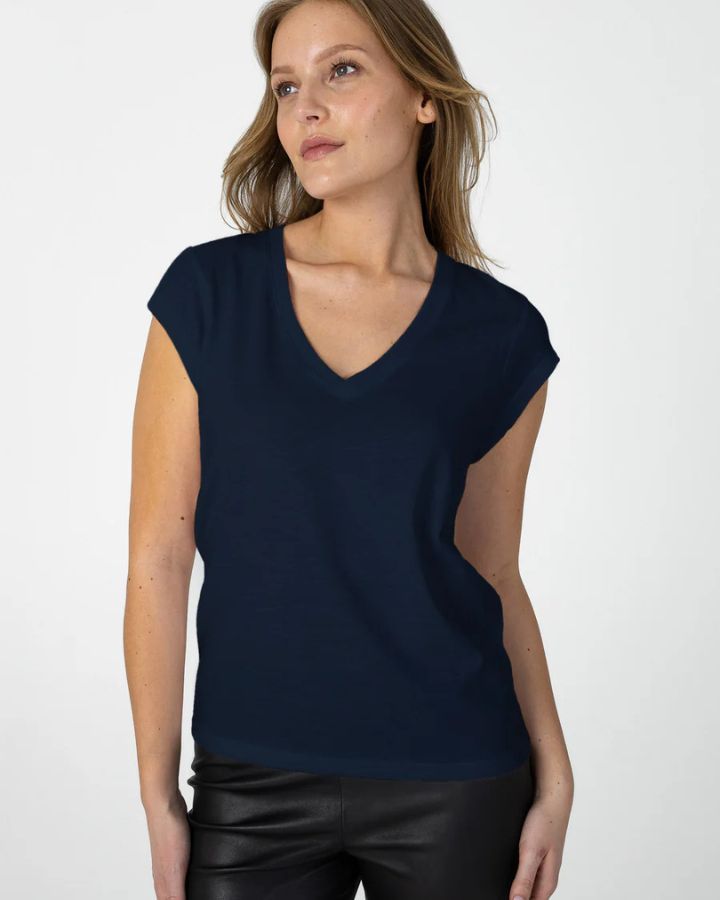 T-shirt à la coupe élégante, épaules tombantes et col en V.