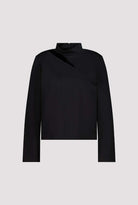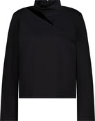 Ce haut noir à manches longues incarne la modernité avec une touche sculpturale.