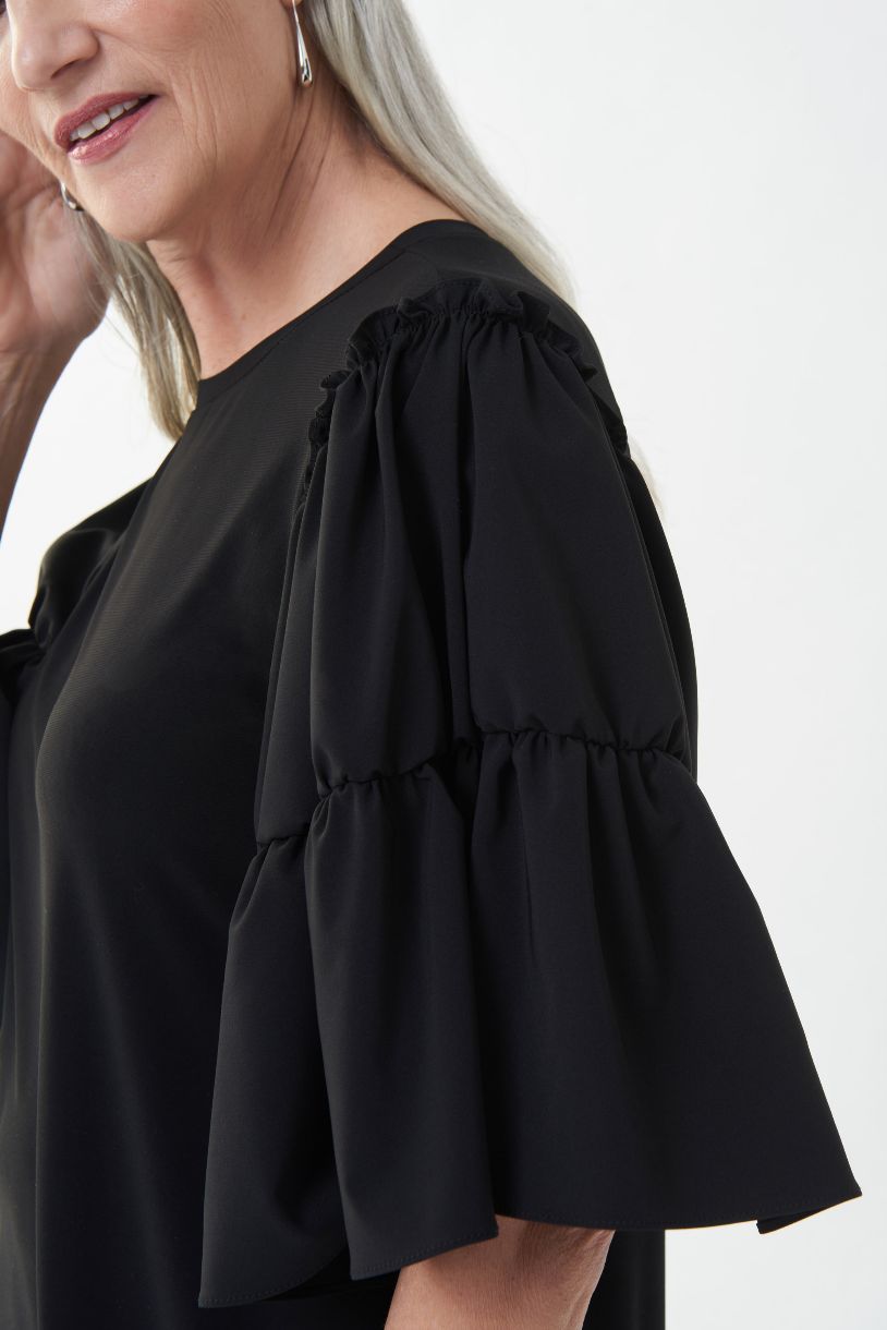 Jolie blouse de soirée, encolure ronde, manches cloche très large, coupe droite, bas arrondi. Composition: 96% polyester, 4% spandex.
