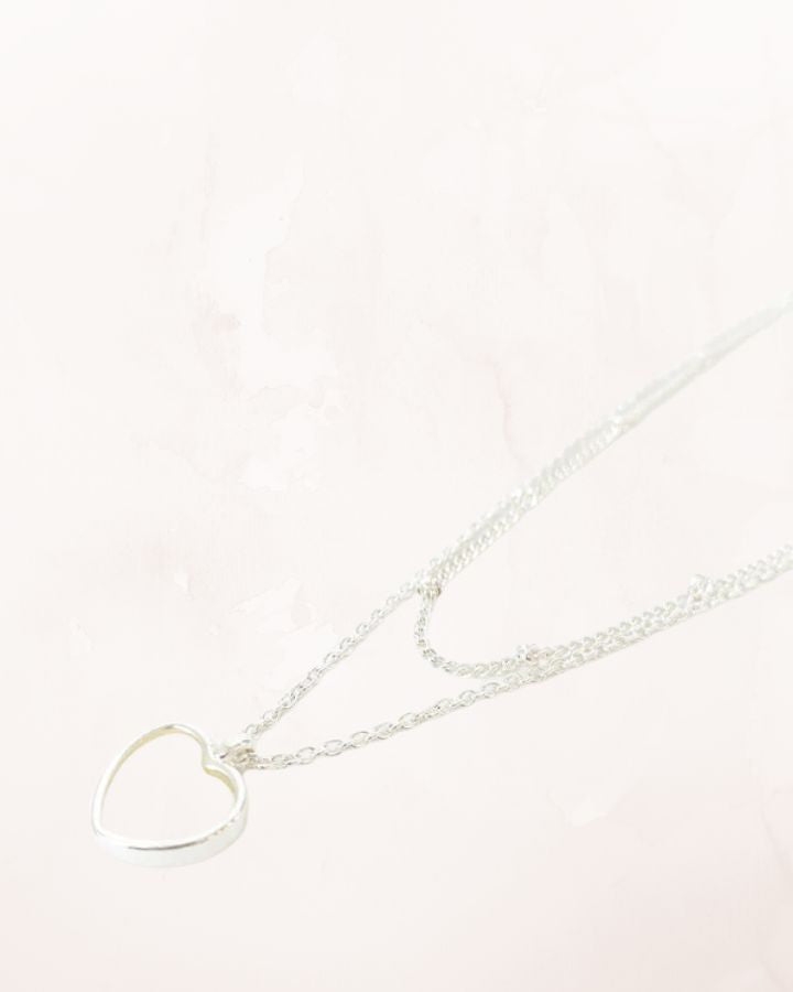 Collier réversible 2 rang sur chaîne avec médaillon coeur en coquillage naturel.
