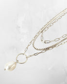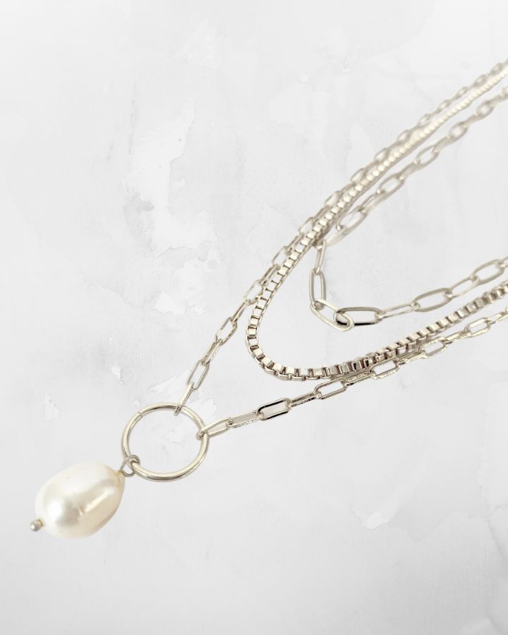 Collier délicat 3 rangs avec chaînes à maillons et imitation perle.