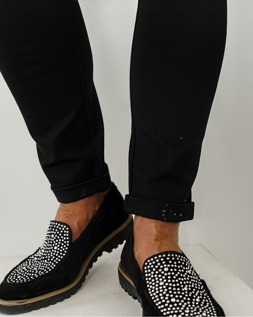 Beau pantalon de base à coupe étroite. Ourlet à revers.