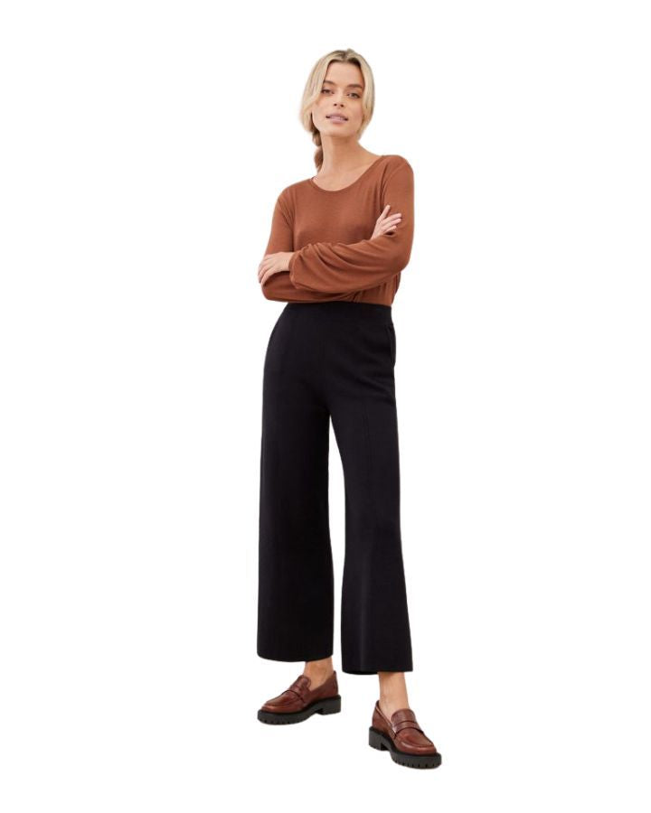 Pantalon en tricot a jambe large avec poche italienne sur le devant.